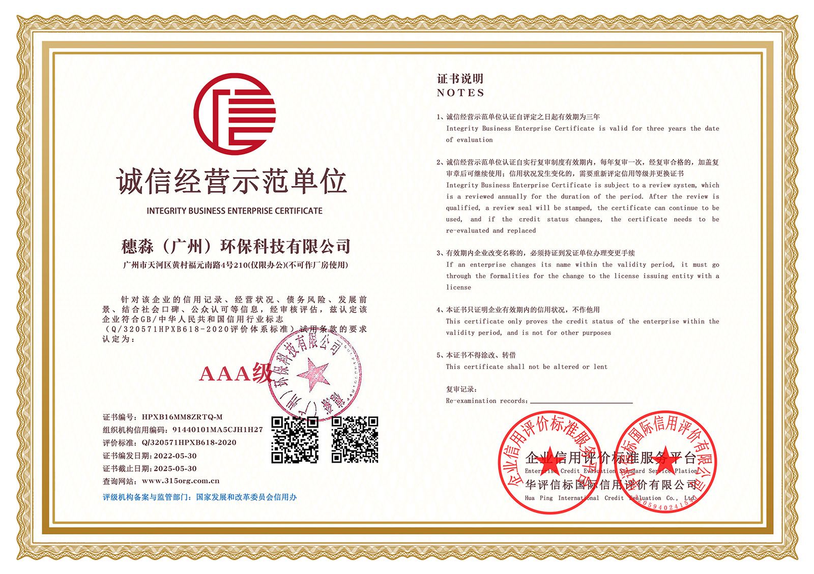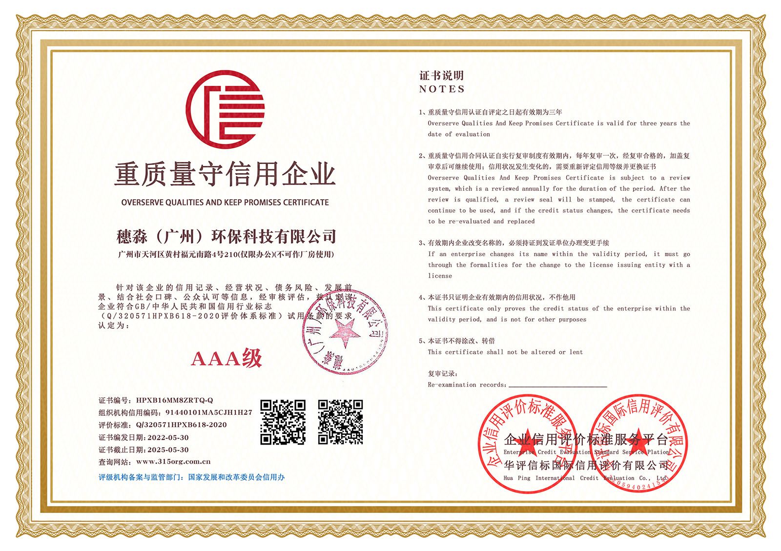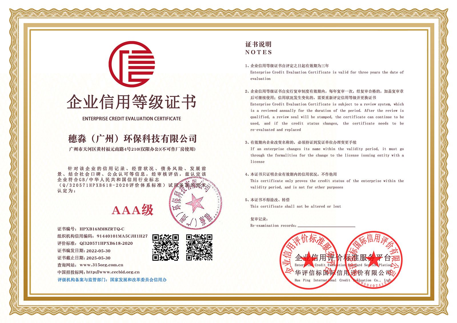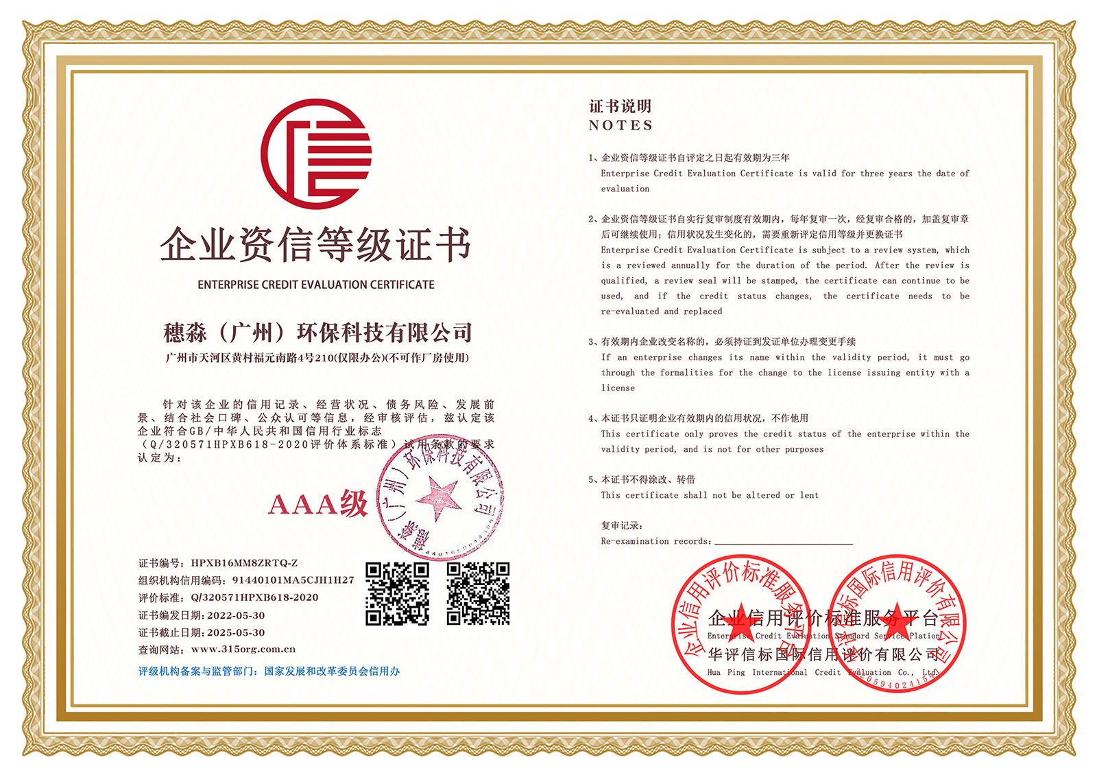 —— 企业信用等级证书双网 ——