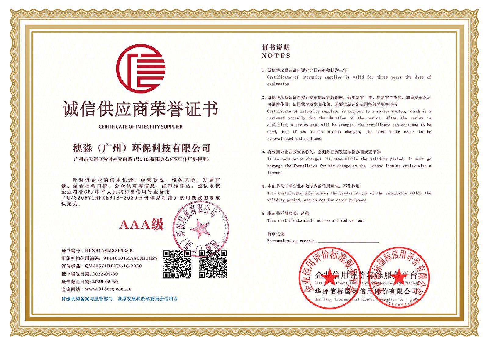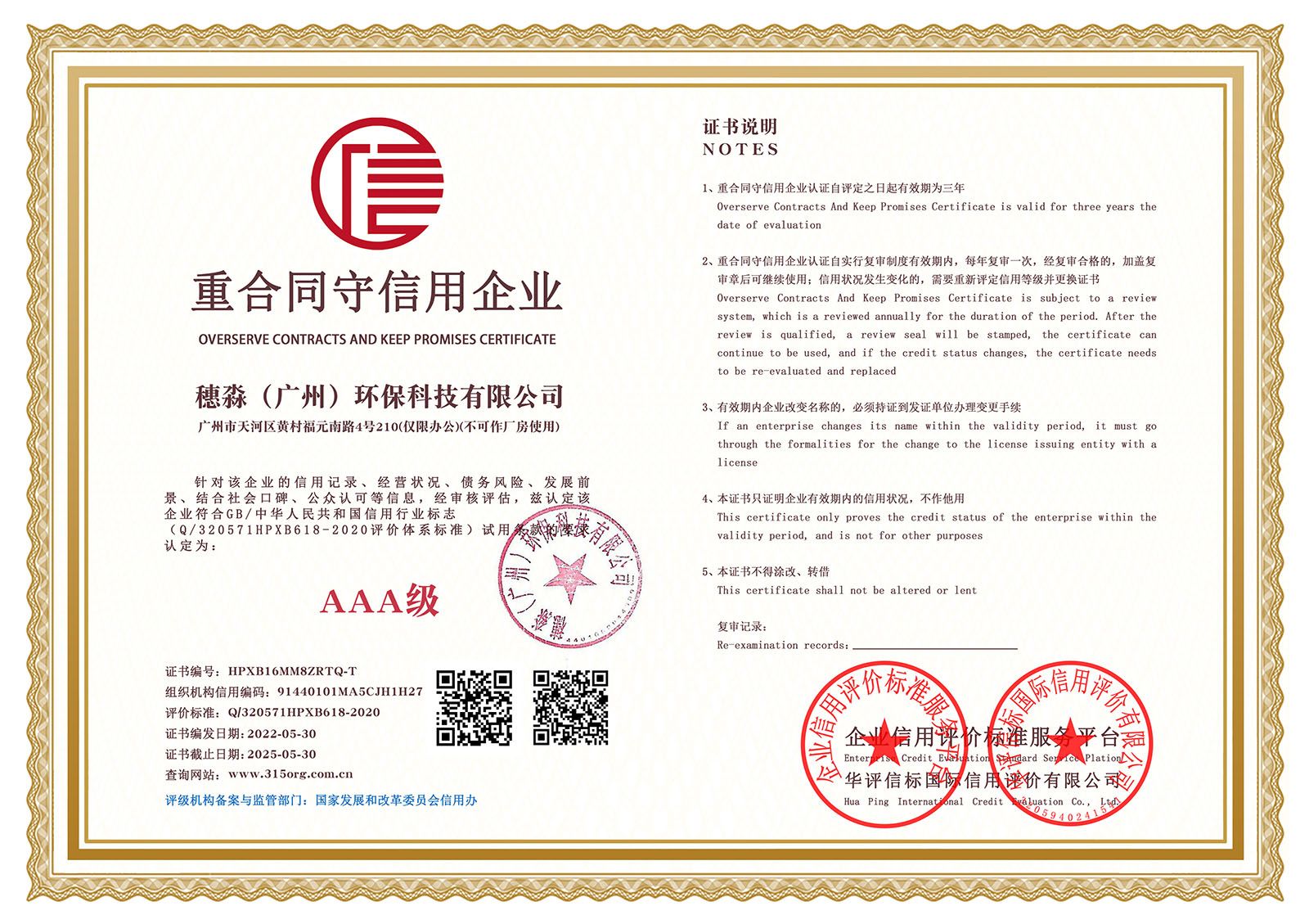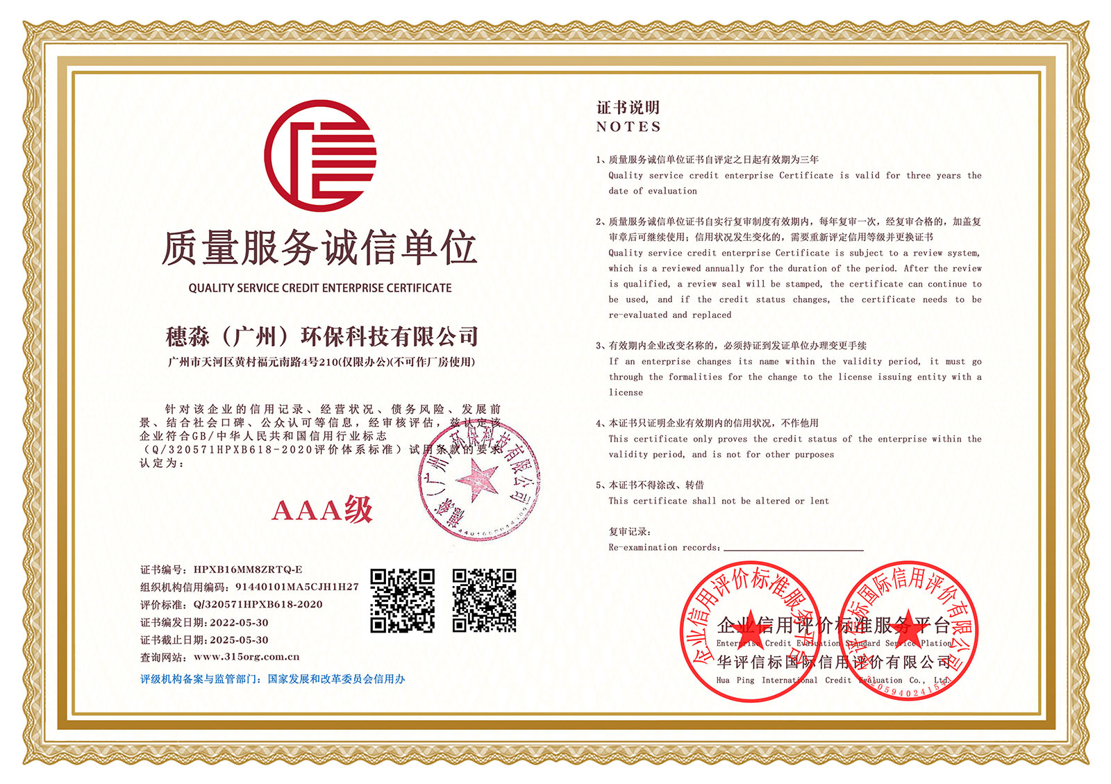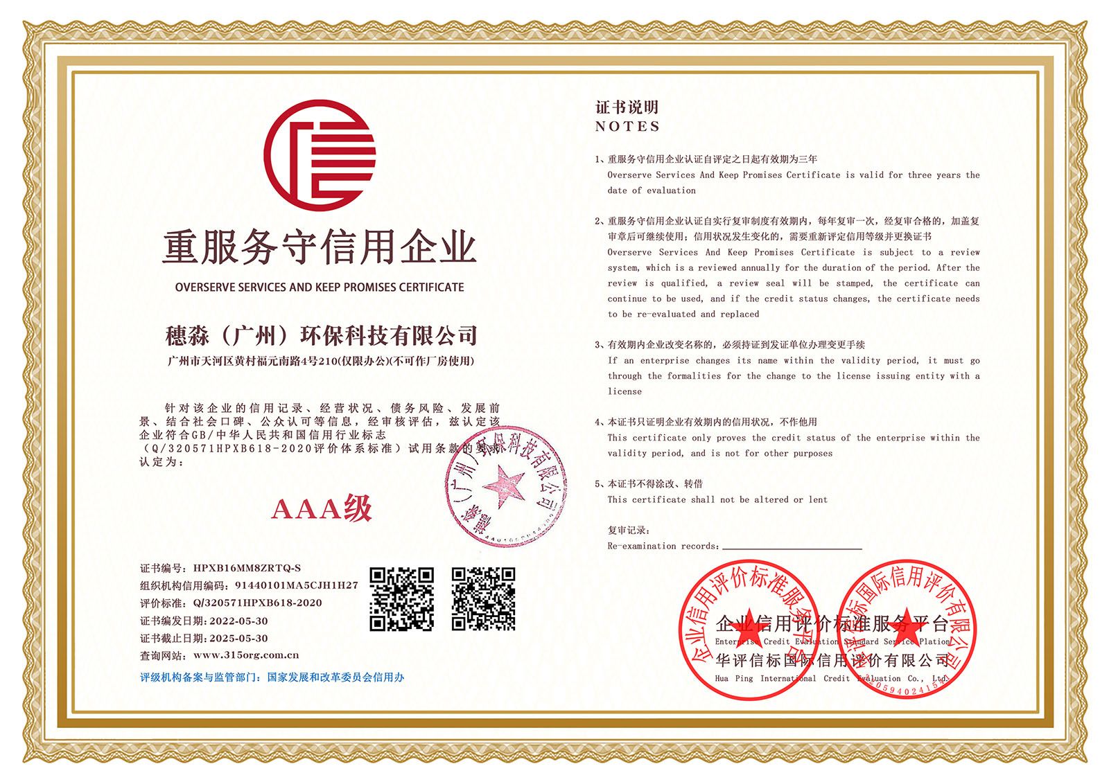 —— 企业信用等级证书双网 ——